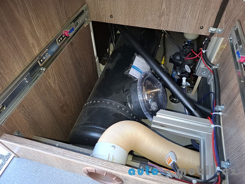 - 2x přepínatelná nádrž čisté vody 120l + 80l odpadní nádrž 90l