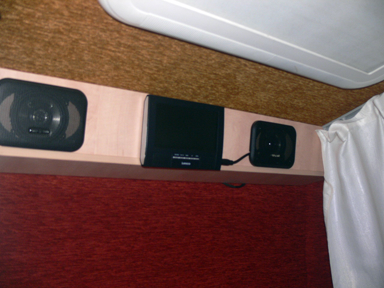 Multimediální dvou zonové 1DIN DVD rádio vybavené HF, DVBT tunerem,GPS navigací. Připojeny jsou 2 externí LCD obrazovky a 2 zadní přepínatelné okruhy vícepásmových reproduktorů