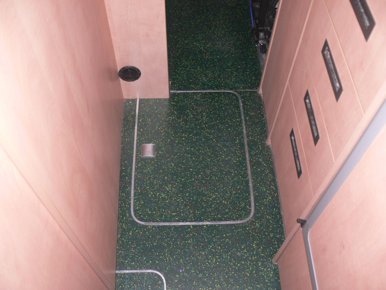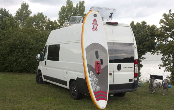 Zavazadlový prostor je díky výškově nastavitelnému lůžku variabilní a je připraven na přepravu jízdních kol ve speciálním nosiči který je snadno demontovatelný. Tunel vedoucí z garáže do přední části vestavby umožňuje v zimním období převoz lyží do délky 210cm nebo plachty a stožáru pro surf.