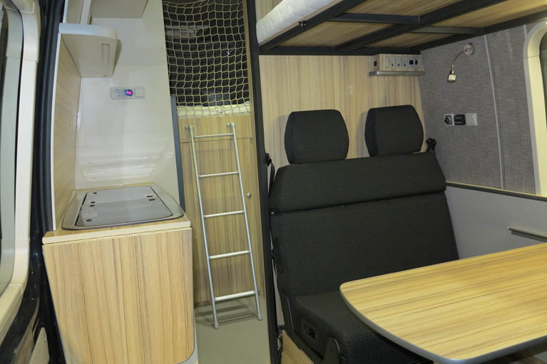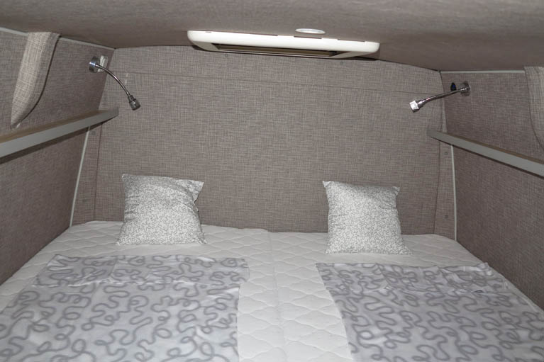 • Horní palanda, zadní dvoulůžko a rozkládací sedadla FASP umožňují pohodlné spaní pro 4 osoby, nebo s více dětmi. Déky všech lůžek 200cm.